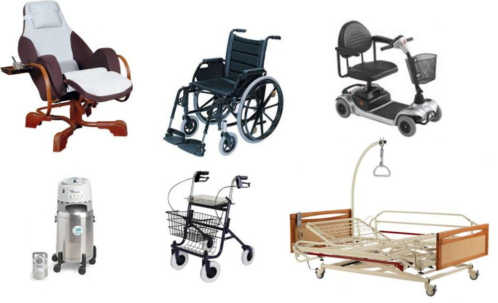 Aides et équipements pour faciliter la vie à domicile (déambulateurs, fauteuils, etc.).